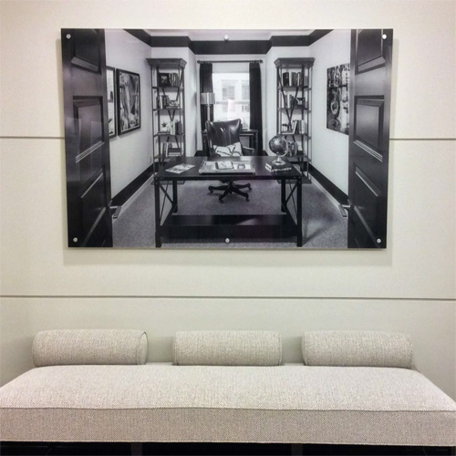 - Translate a logo into lobby signs, acrylic displays, wall graphics, or window messaging that fits the space