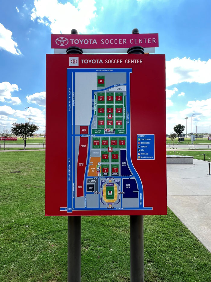 FC Dallas Toyota Stadium branded graphics and sponsor signage installed for venue visibility