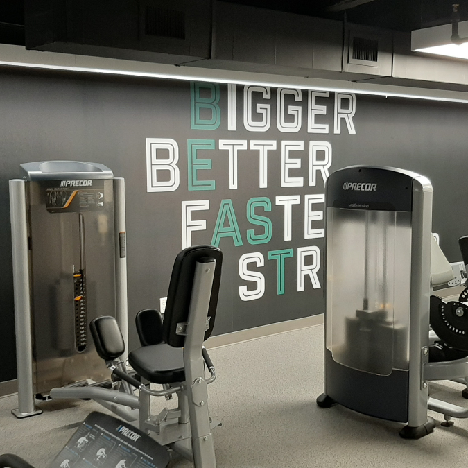 Schools, training centers, and sports venues also use wall graphics, windows, and lobby visuals to carry team branding through the full space. That matters because it makes the environment feel intentional instead of pieced together from separate jobs.