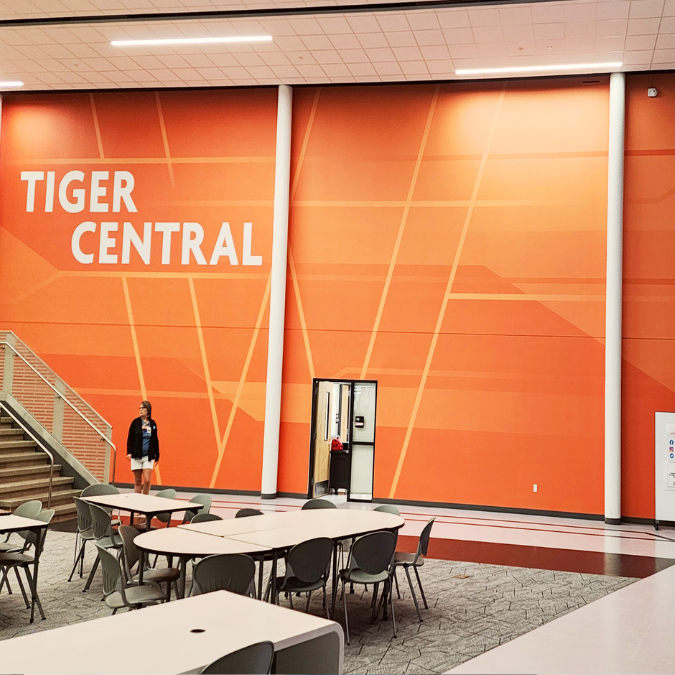 School wall graphics and visual storytelling for hallways, commons, and high traffic spaces.